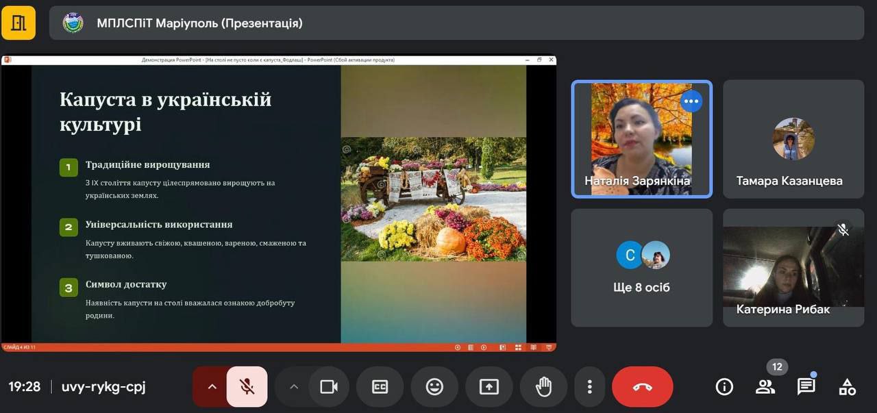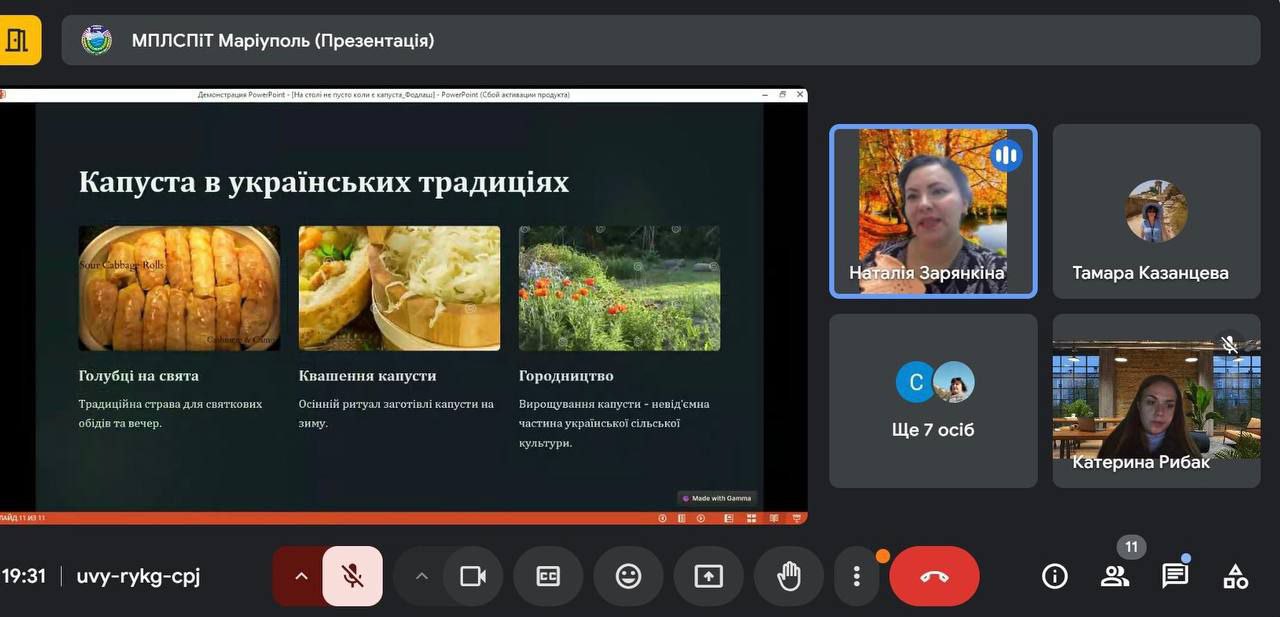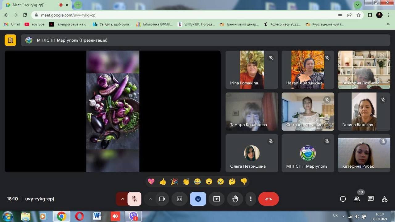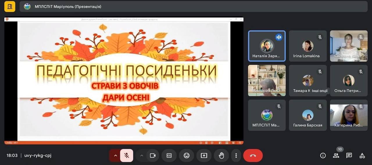 30 жовтня 2024 року в Маріупольському професійному ліцеї сфери послуг і торгівлі відбувся онлайн-захід "Страви з овочів. Дари осені" серед викладачів та майстрів виробничого навчання кулінарного напрямку.